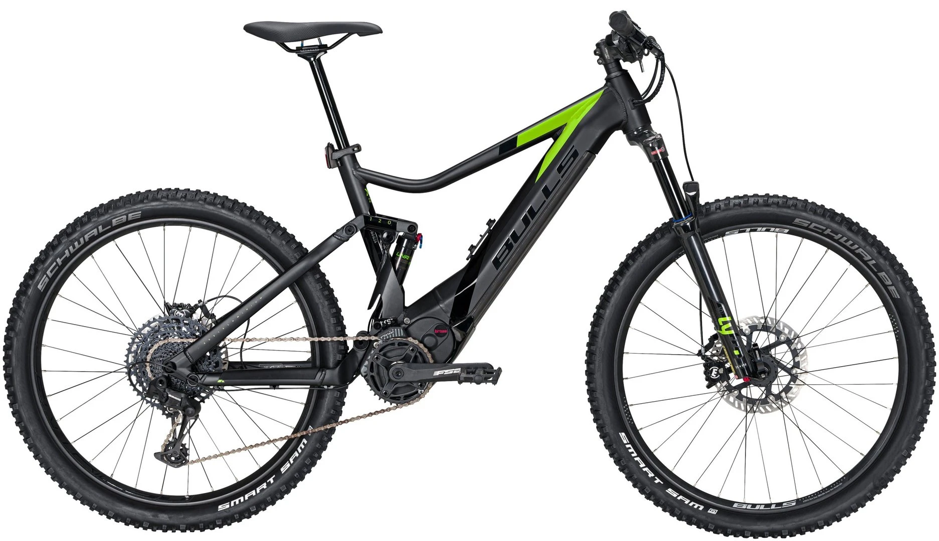 Hydroforming Alu-Rahmen, Lytro 34 LOR Air Federgabel, Suntour Unair TR LO-R8 Dämpfer, 120mm Federweg vorne und hinten, Deore Schaltwerk und Schalthebel, 11-42 Zahnkranz, Tektro HD-M275 Bremsen (180/180mm), Bulls AS-30T Disc Felgen, Brose Mittelmotor Drive