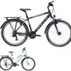 6061 Alu-Rahmen, Suntour M-3010 Federgabel, 18-Gang Shimano Tourney Schaltwerk und Umwerfer, RS36 Revo-Shift Schalthebel, Alu Kurbeln 140mm, Alu HR-Nabe, Alu Felgen, Tektro V-Bremsen, Alu-Lenker, Steckbleche, Nabendynamo, 30 Lux LED-Lampe, StandrĂŒcklicht, einstellbarer StĂ€nder