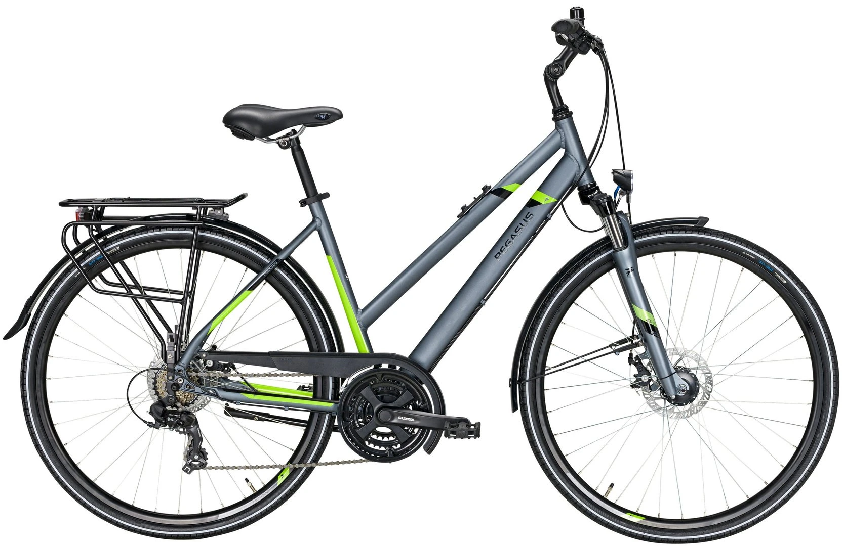 6061 Alu-Rahmen, Suntour NEX-DS Federgabel, Tourney Schaltwerk und Umwerfer, Altus Schalthebel, Suntour Kurbeln, Tektro MD-M280 mechanische Scheibenbremsen, DDM-2 Hohlkammer-Felgen, Vee-Tire City-Cruz Reifen (42-622), verstellbarer Vorbau, Ergo-Griffe, Freeway Sattel, Nabendynamo, 15 Lux LED-Lampe, StandrĂŒcklicht