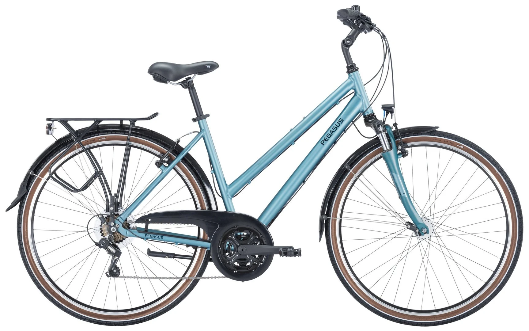 Ausgestattet mit einer SHIMANO 21-Gang-Schaltung bietet das Piazza 21 jede Menge sportlichen Spielraum. Schnell durch den Alltag oder raus in die Natur – alles kann, nichts muss. Neben der entspannt-sportlichen Sitzposition sorgt die robuste Federgabel dabei fĂŒr zusĂ€tzlichen Fahrkomfort.
