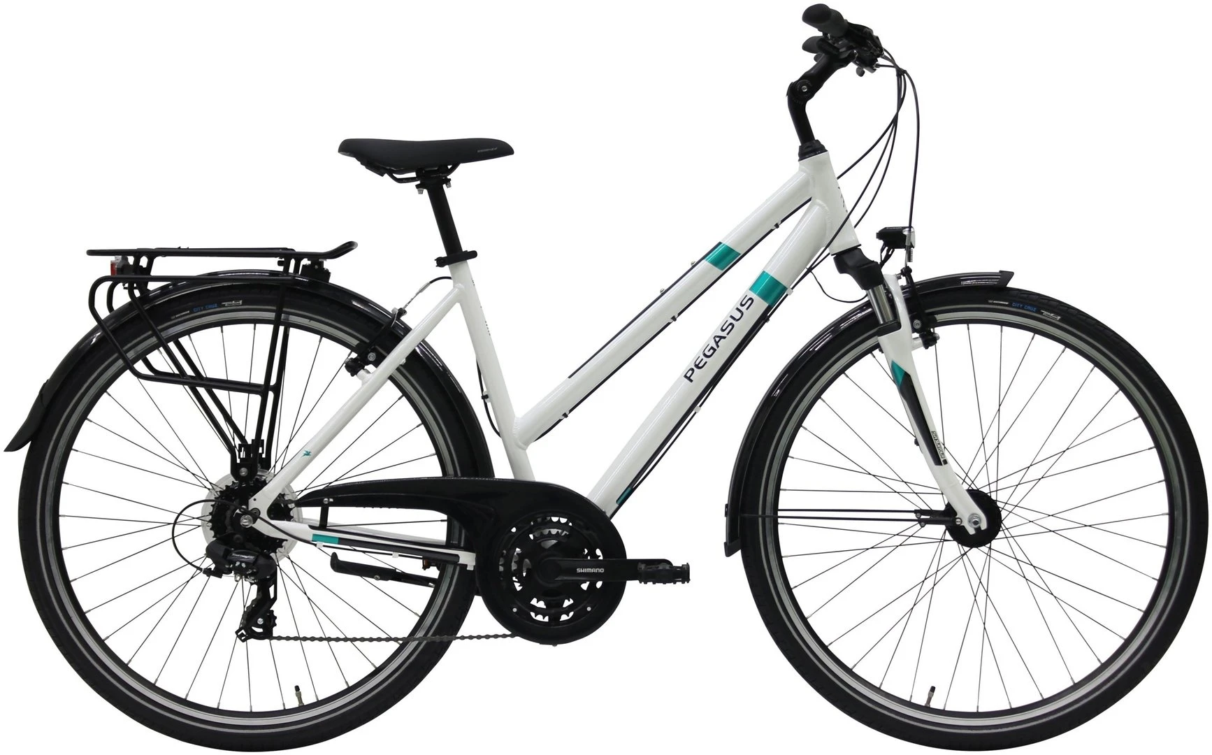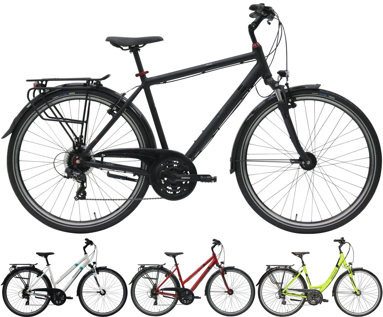 7005 Alu-Rahmen, Suntour CR-7V Federgabel, Altus Schaltwerk und Schalthebel, Tourney Umwerfer und Kurbeln (48 ZĂ€hne), Formula Kassettennabe, V-Bremsen, DBM-2 Hohlkammer-Felgen, Vee Tire Santa Cruz Reifen (44-622), verstellbarer Vorbau, 2-Bolt SattelstĂŒtze, Nabendynamo, 30 Lux LED Sensor-Lampe, Standlicht vorne und hinten