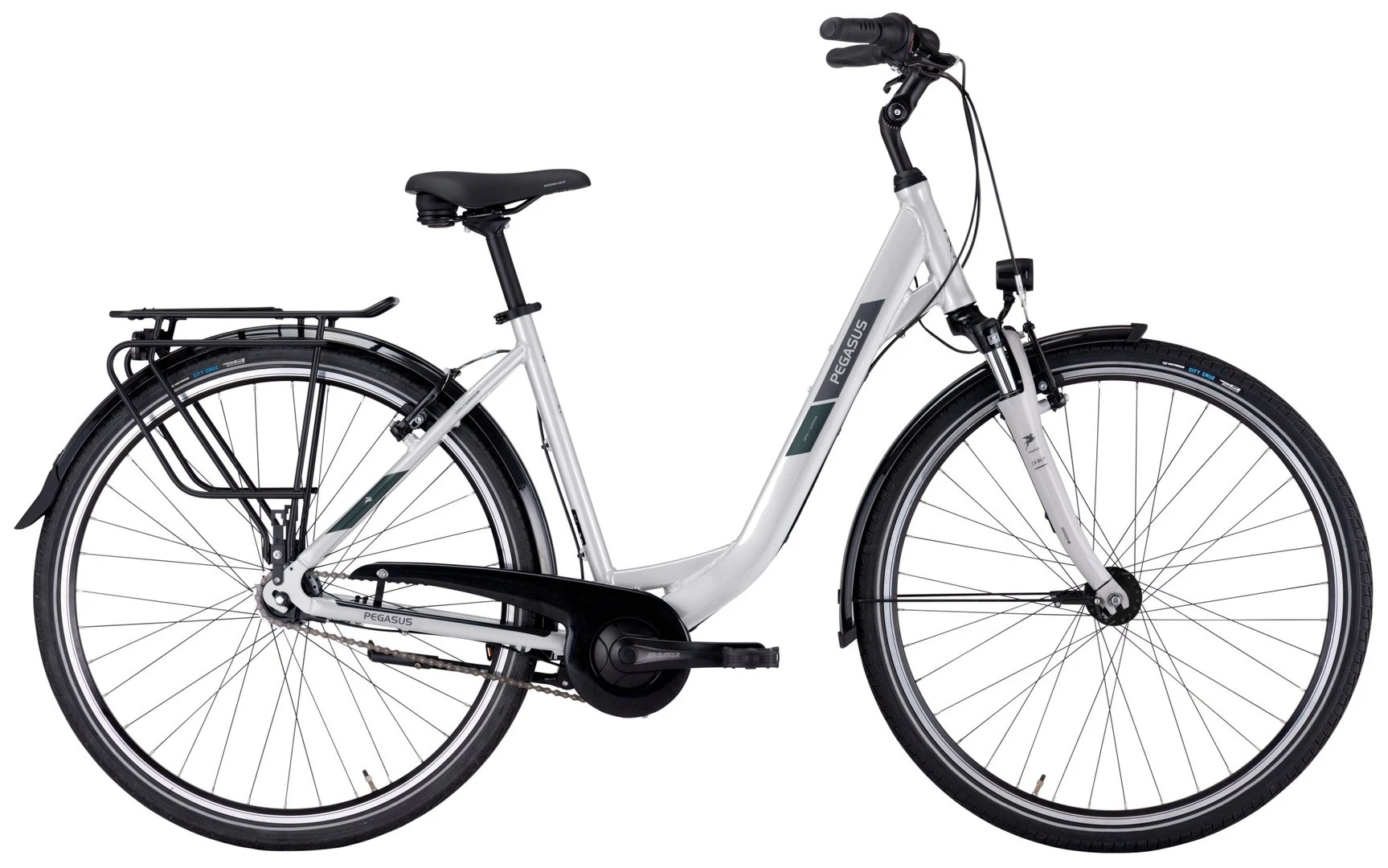 6061 Alu-Rahmen, Suntour CR-8V-P Federgabel, Shimano Nexus Nabenschaltung mit Revoshift Schalthebel und RĂŒcktritt, Alu Kurbeln, V-Bremsen, DBM-2 Aluminium Hohlkammer-Felgen, verstellbarer Vorbau, Trekking-Lenker, Nabendynamo, 50 Lux LED Lampe, Standlicht, GepĂ€cktrĂ€ger mit Monkeyload-T Stecksystem, Vee Tire City Cruz Reifen (44-622), Selle Royal Essenza Sattel