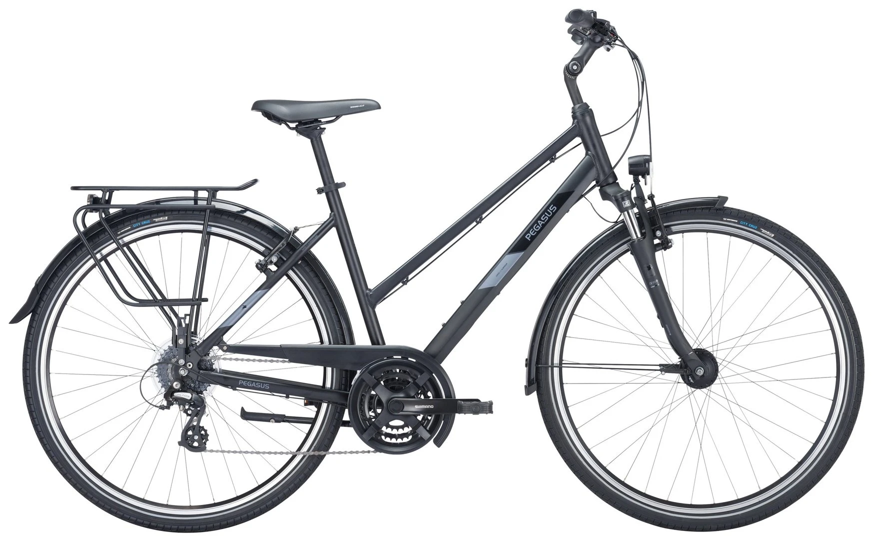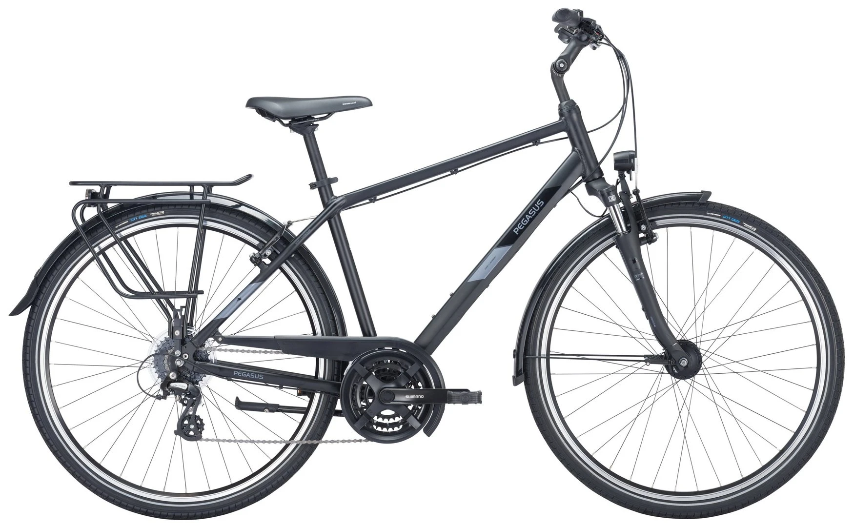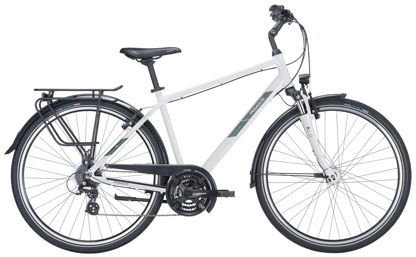 6061 Alu-Rahmen, Suntour CR-8V-P Federgabel einstellber, Altus Schaltwerk und Schalthebel, Tourney Umwerfer und Kurbeln (48 ZĂ€hne), Formula Kassettennabe, V-Bremsen, DBM-2 Hohlkammer-Felgen, Vee Tire Santa Cruz Reifen (44-622), verstellbarer Vorbau, 2-Bolt SattelstĂŒtze, Nabendynamo, 50 Lux LED Lampe, StandrĂŒcklicht, ergonomische Lenkergriffe