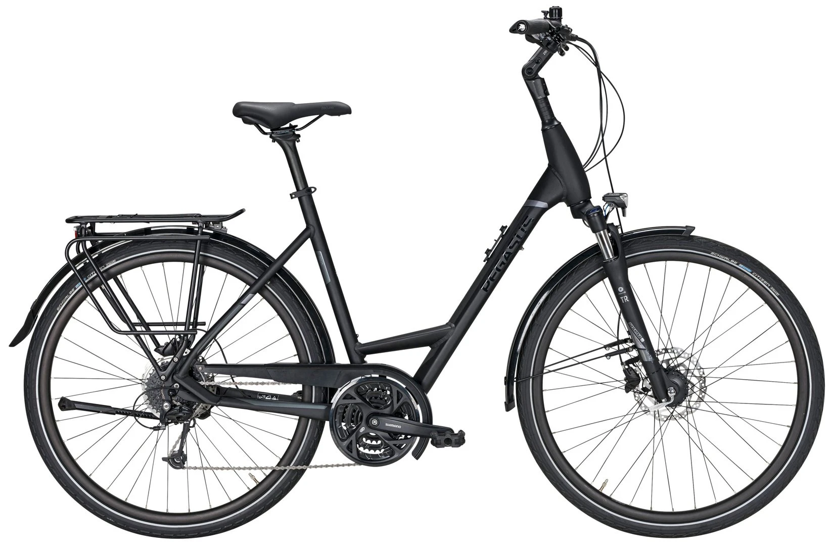 Hydroforming 6061 Alu-Rahmen, Suntour NEX-E25-HLO Federgabel, Alivio Schaltwerk mit Acera Umwerfer und Altus Schalthebeln und Tretlager, Shmiano MT201 Scheibenbremsen (180/180mm), Andra-25 Hohlkammerfelgen, Zecure Lenker, Vorbau (verstellbar), Sattel und SattelstĂŒtze, Schwalbe Citizen Reifen (47-622), 50 Lux LED-Lampe, StandrĂŒcklicht, I-Rack-2 GepĂ€cktrĂ€ger