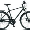 Geschweißter Big-Size Aluahmen mit Unicrown Gabel, Shimano Tourney 7-Gang Kettenschaltung mit Drehgriff, Alu V-Bremsen vorne und hinten, Alu Hohlkammerfelgen, City-Lenker, Stahl-Schutzbleche, Gepäckträger, Standrücklicht, LED-Lampe, Nabendynamo